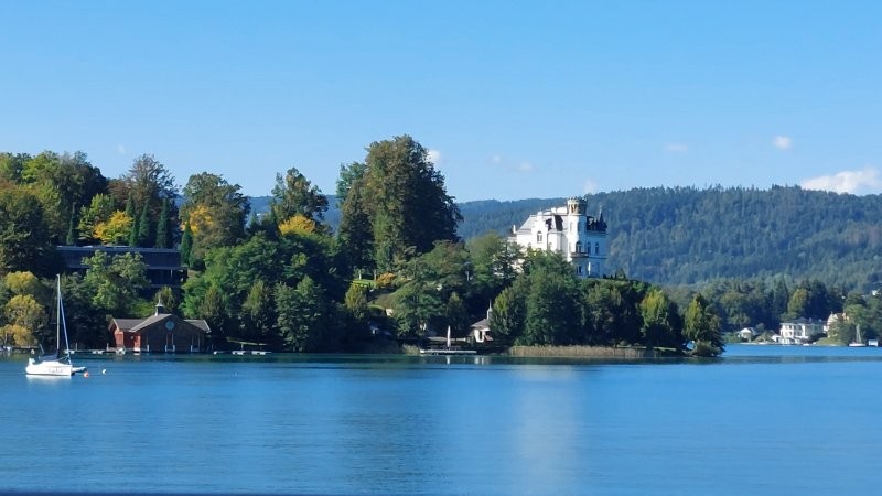 A wörthi tavon hajókáztunk egyik délután. A víznek csodaszép kék színe van, a táj is gyönyörű, szerencsére aznap sütött a nap, így a víz különleges kék színe még szebb volt és áttetszően tiszta.